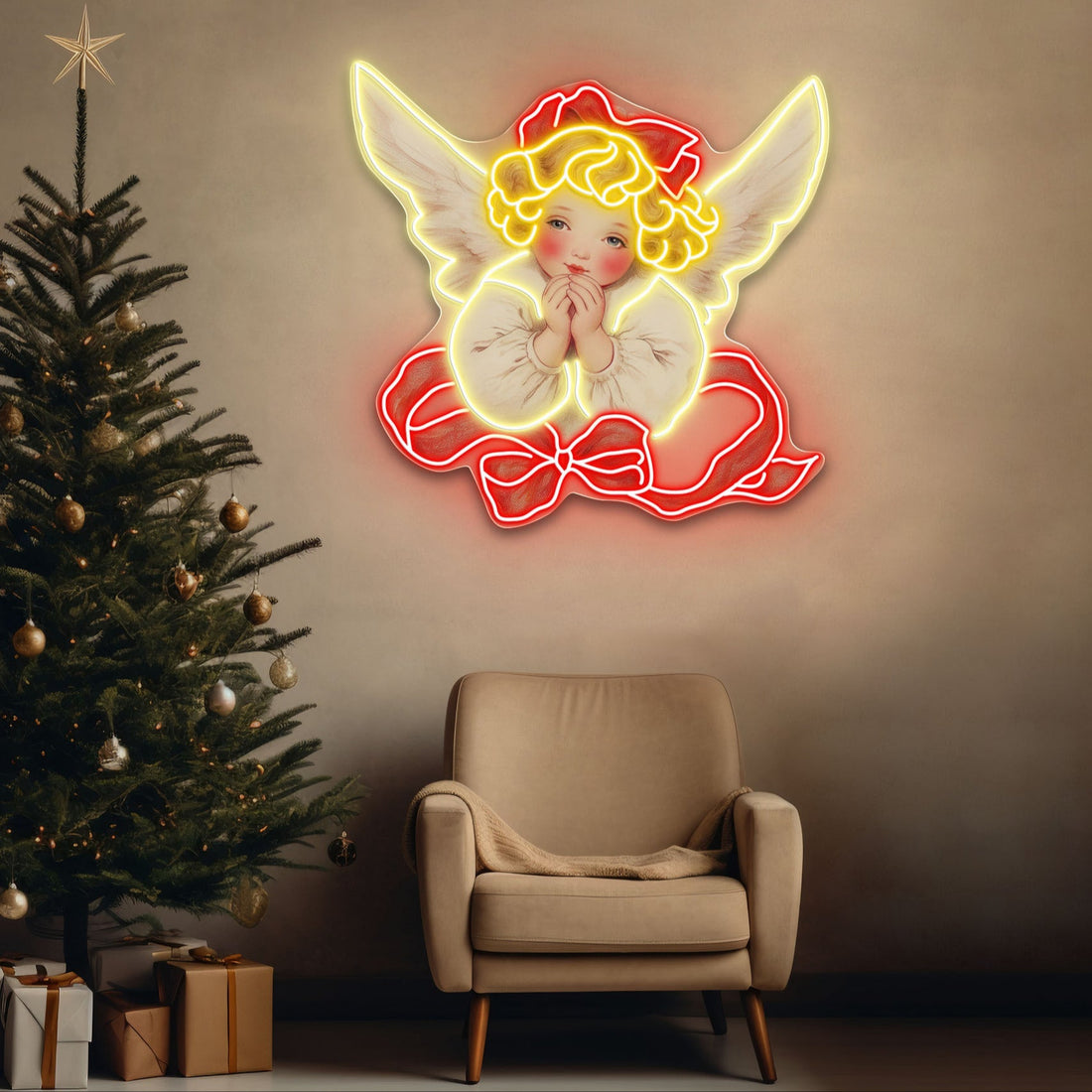 Angelic Blessings for a Peaceful Christmas Neon Sign Light Artwork