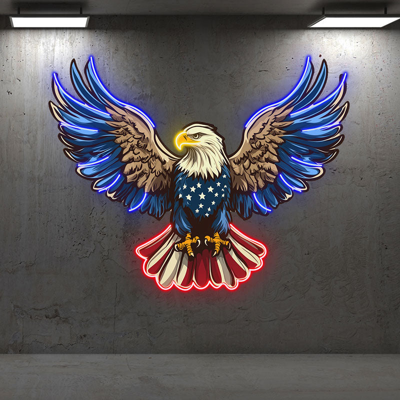 American Eagle Neon Light - Patriotic Wall Decor LED Sign, Stars & Stripes Design, Ideal for Living Room, Office or Man Cave