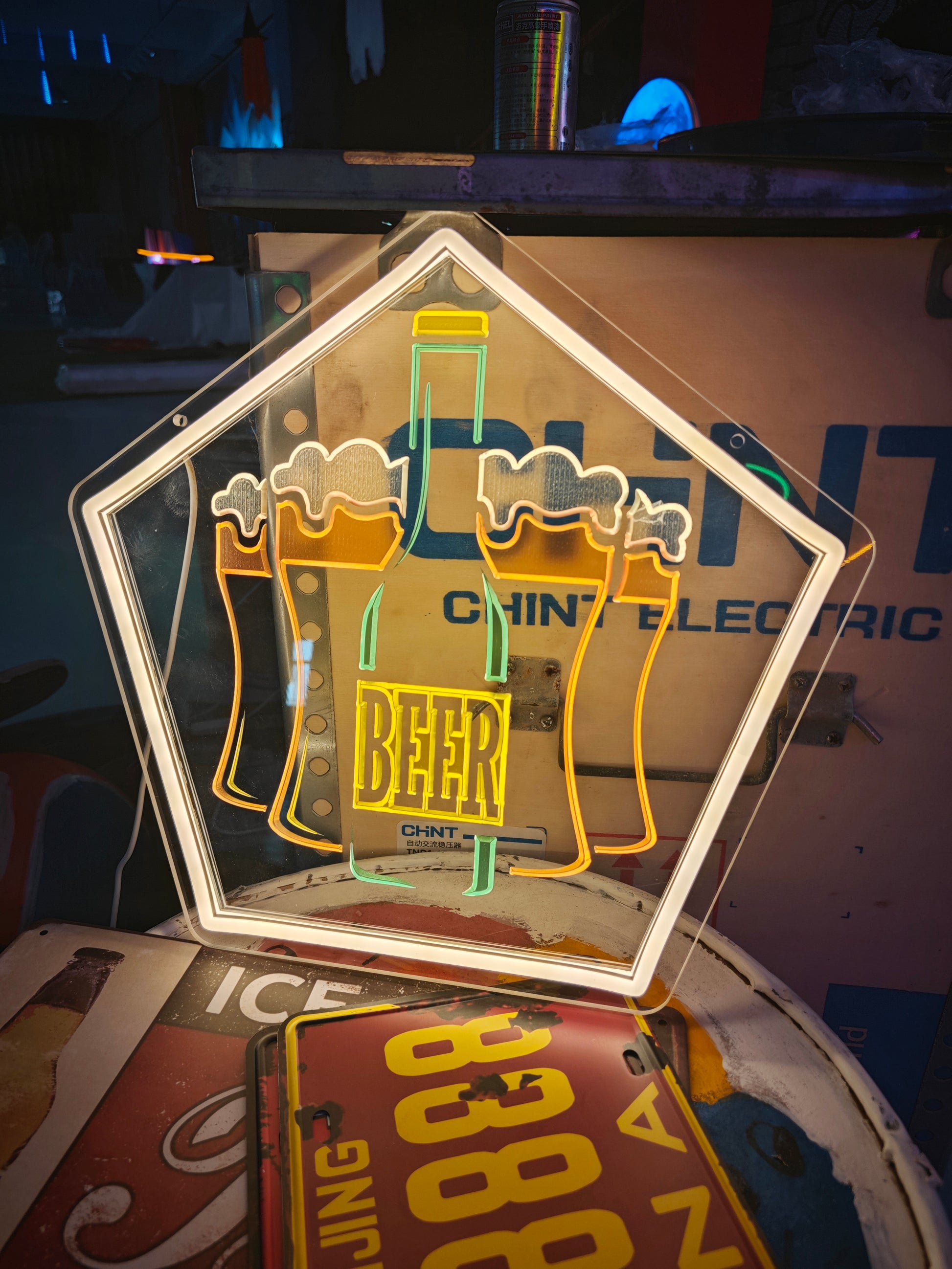 3D embossed neon sign, acrylic light guide plate, bar sign, BEER, customizable content and pattern