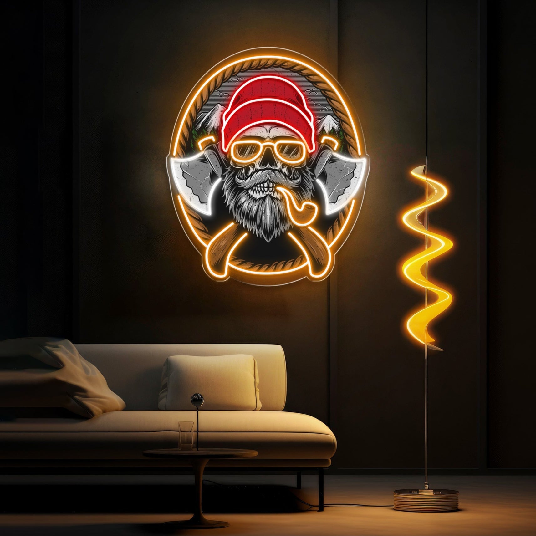 Beard Woodman Skull With Axe Neon Sign Light Artwork